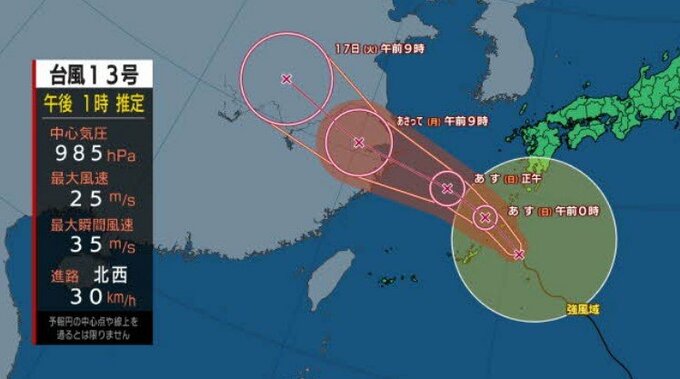 【台風情報】台風13号 奄美市の南東に 台風は発達しながら北西に進む見込み(今後…