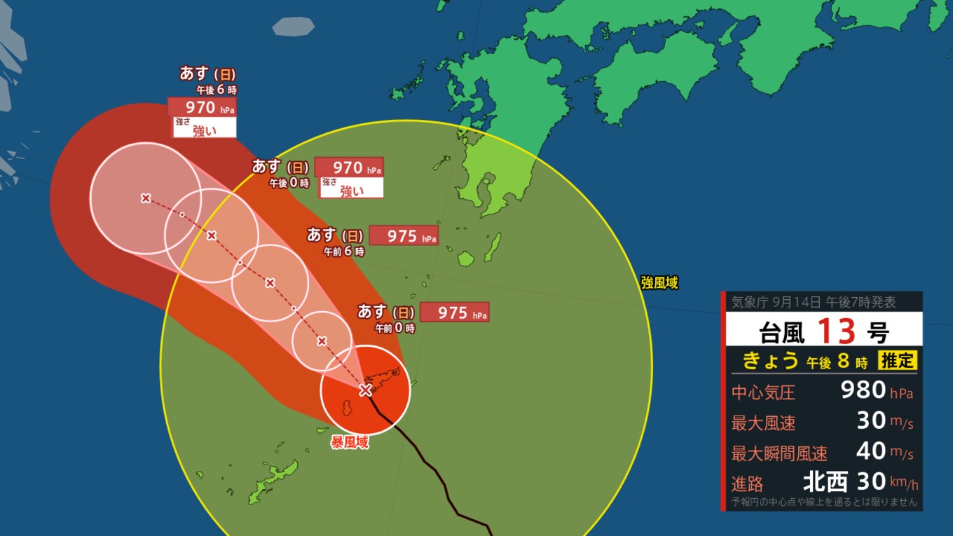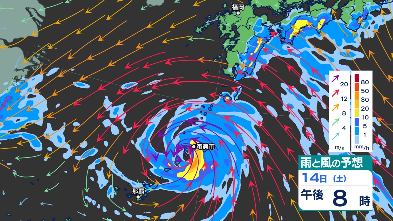 台風13号 奄美地方にまもなく最接近 奄美市で最大瞬間風速27.8メートル(午…