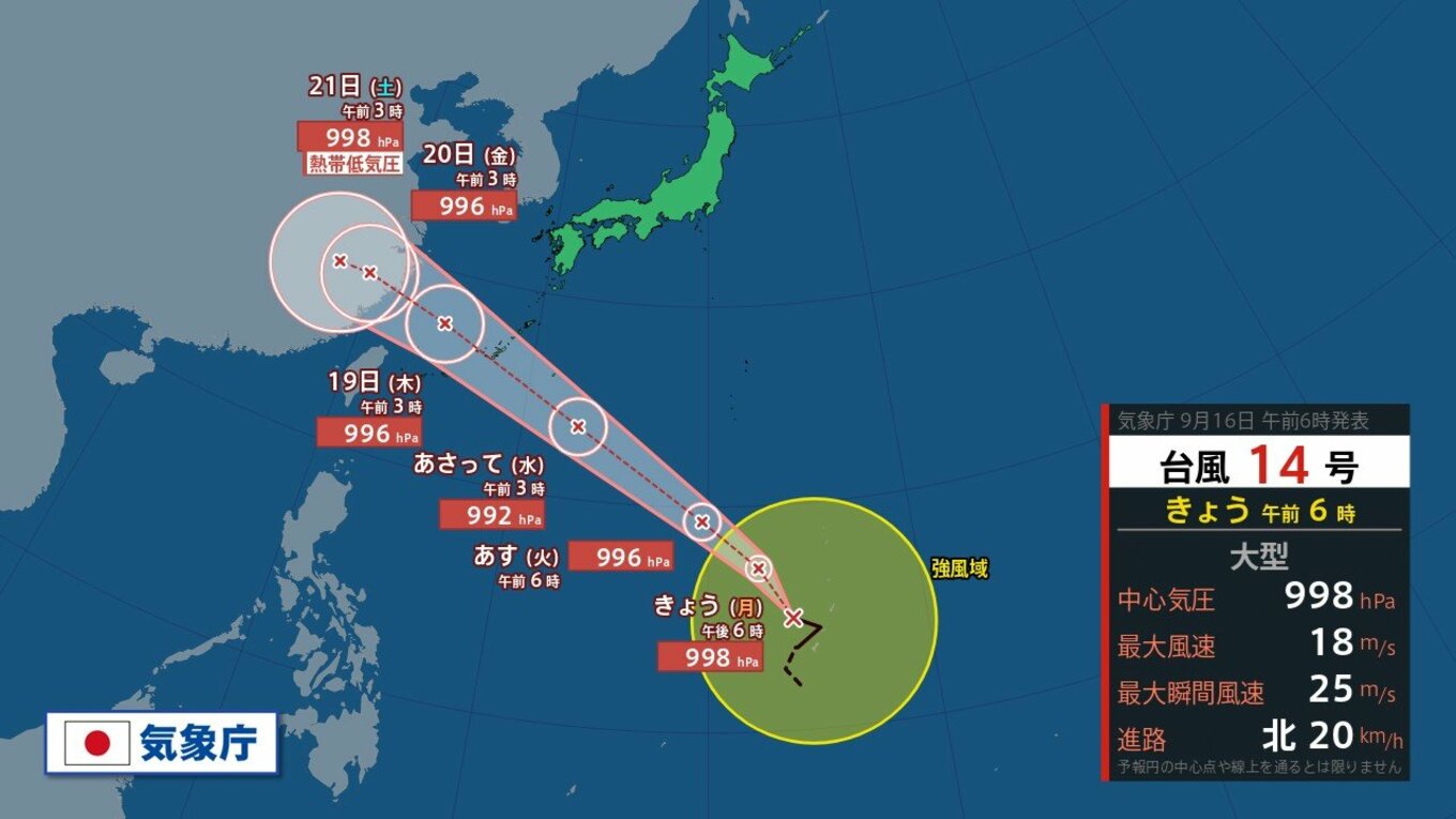 【台風情報】大型の「台風14号(プラサン)」発生 気象庁発表 18~19日に沖縄接近…