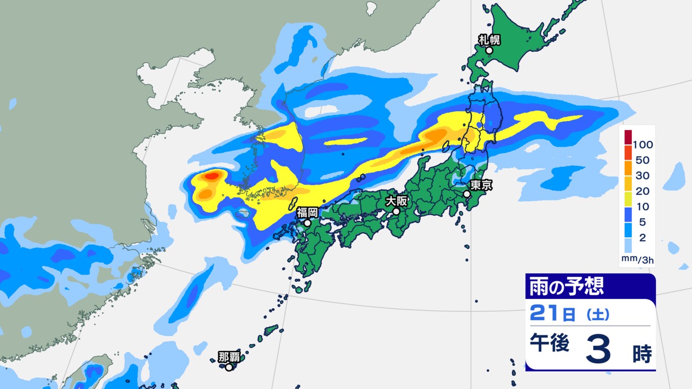 【大雨情報】秋雨前線が九州~近畿~関東にのびる予想 前線が列島南下、3連休の雨…