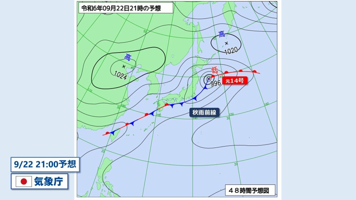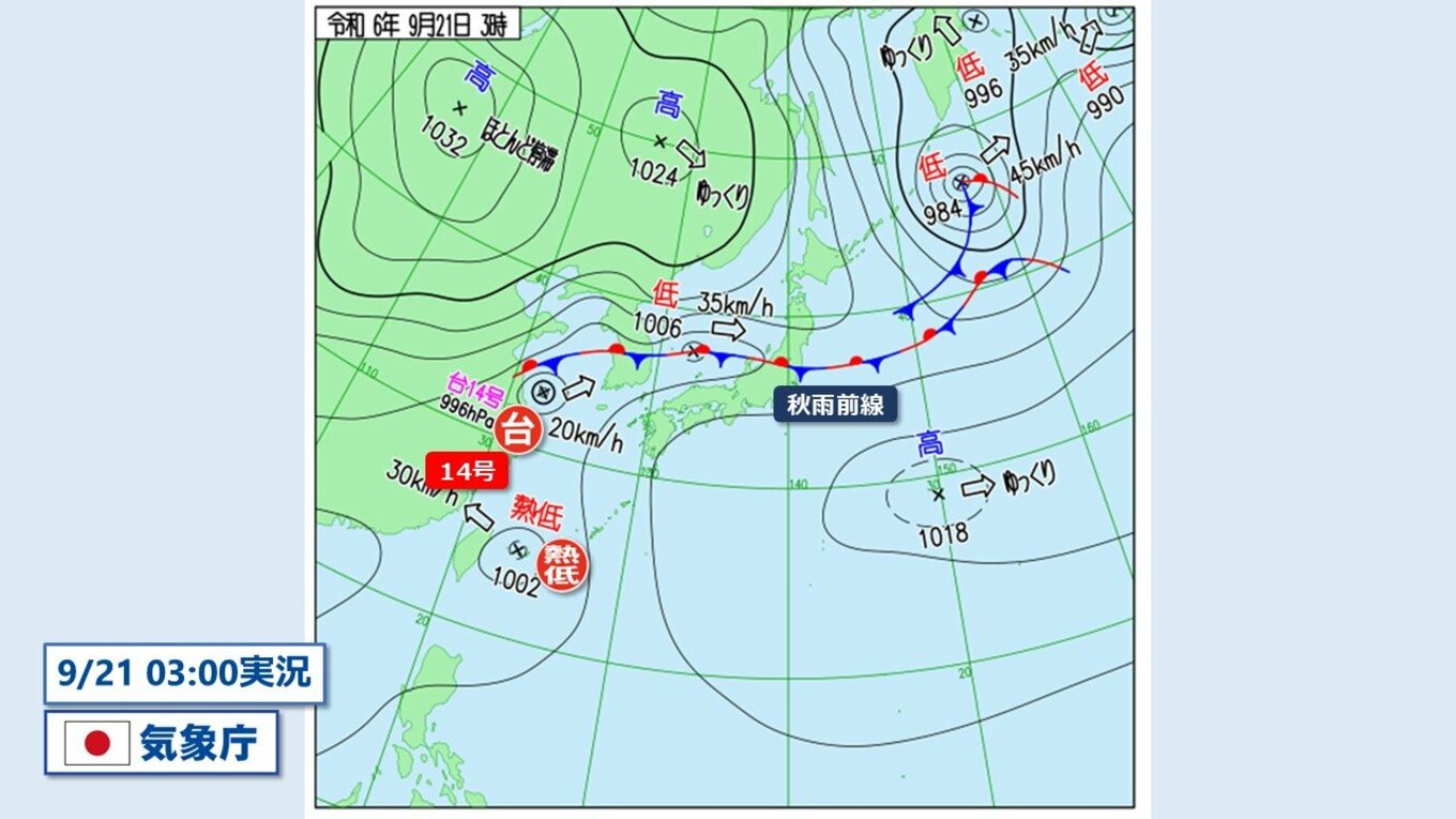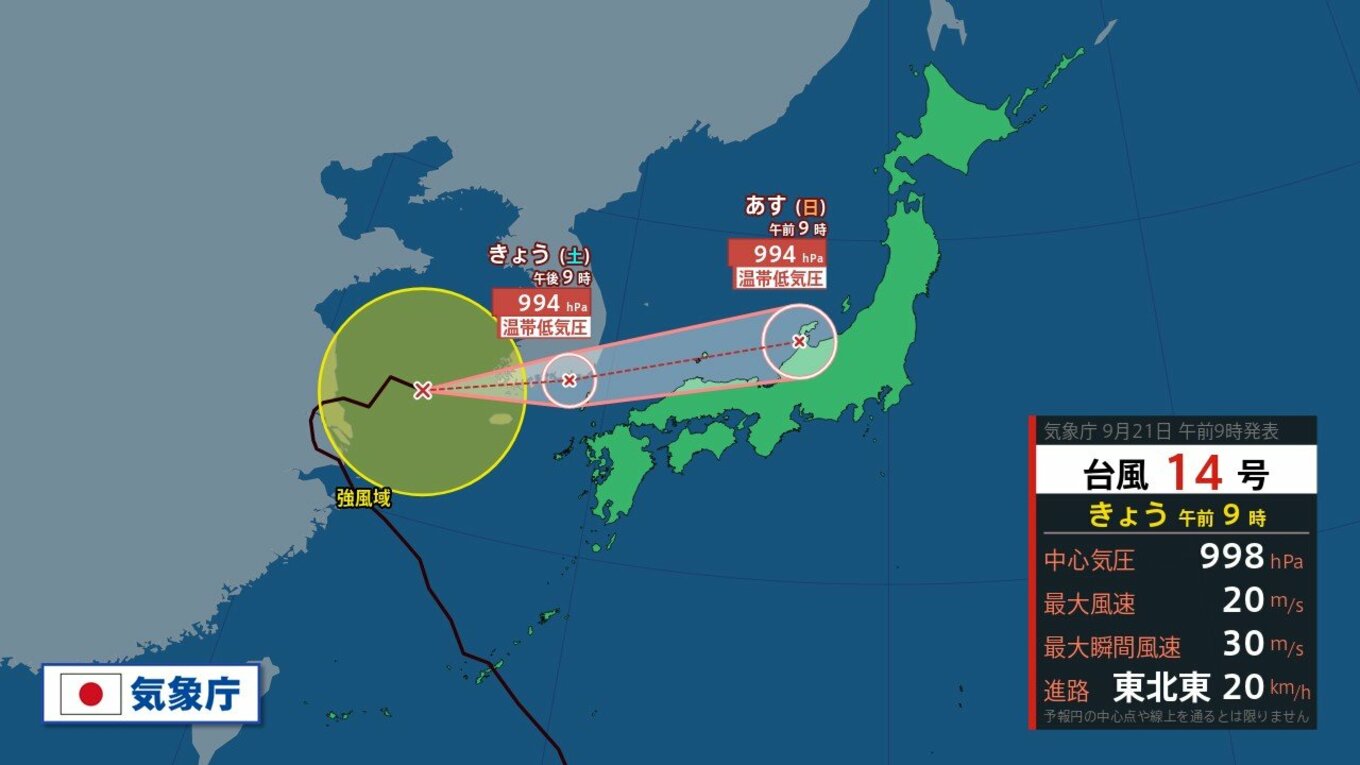 【台風情報】台風14号はやや発達しつつ温帯低気圧へ “秋雨前線と一体化”して山陰…