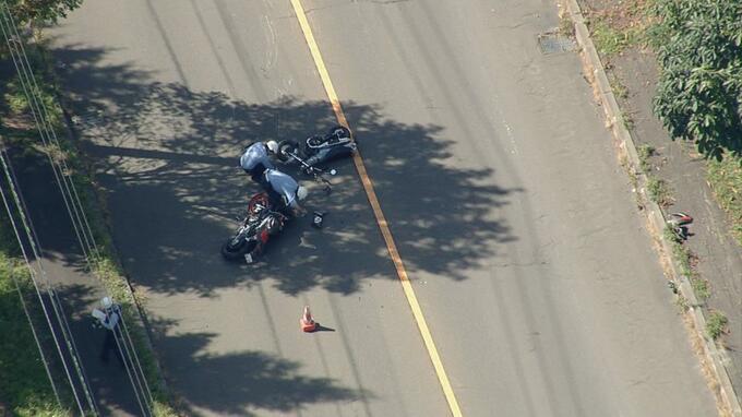 「バイク同士が衝突、けが人が2人いる」野球場の出入口の近くで、衝突か…それぞれ…