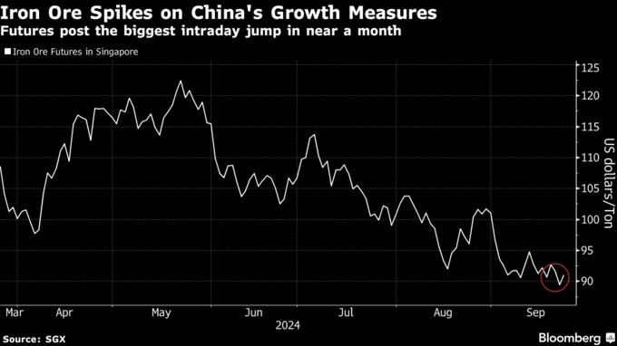 鉄鉱石、大きく値上がり-中国の景気対策で需要見通し改善