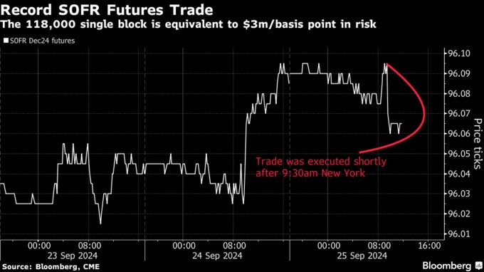 米短期金利市場、過去最大の大口取引-ロング手じまい利益確定か
