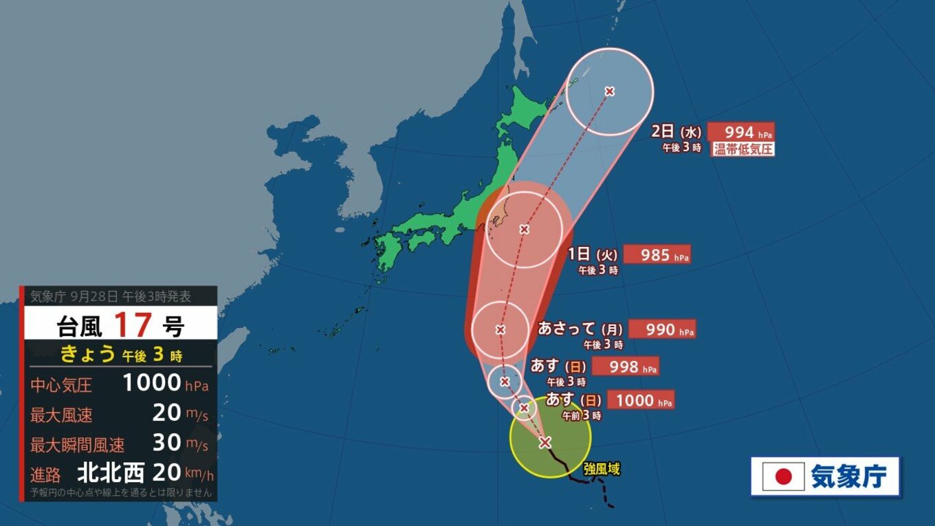 【台風情報】関東上陸の可能性は?台風17号は暴風域を伴って接近予想 気象庁の進路…