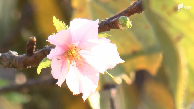 「上の方がまだ咲きそうな感じ」ヒガンバナとサクラの共演 季節外れの開花に地元住…
