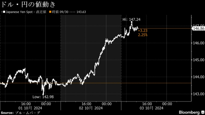 円は対ドルで一時147円台前半に下落、石破首相発言受けた売り続く