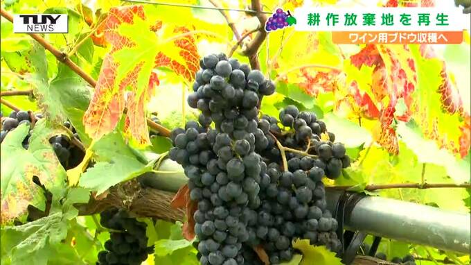 耕作放棄地で試験栽培されていたワイン用ブドウを収穫  今年は赤ワインと白ワイン…
