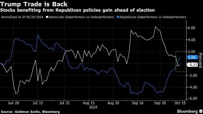 「トランプトレード」活気取り戻す、ゴールドマンは最大8%高を予想