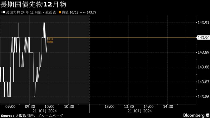 債券先物は上昇、原油価格の下落を受けて米長期金利が低下