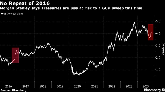 トランプ氏と共和党圧勝でも米国債への影響限定的-モルガンS予想