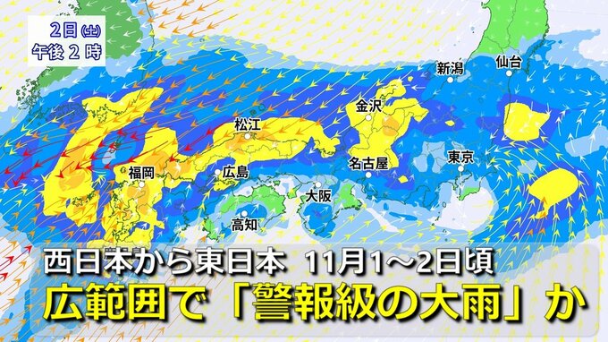 【台風情報】11月1~2日頃は西日本・東日本の広範囲で「警報級の大雨」おそれ 秋雨…