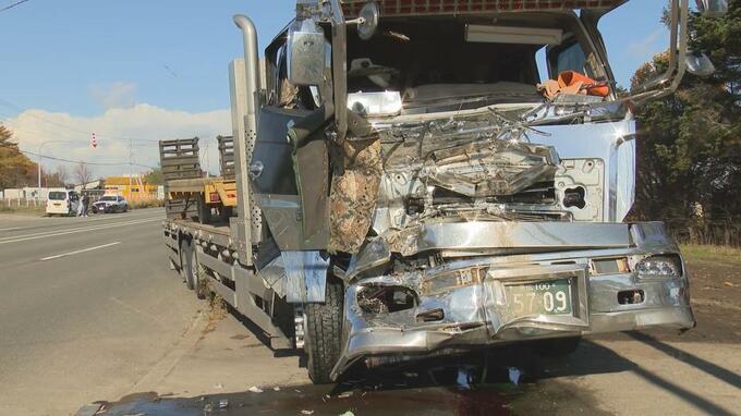 速報 右折待ちで停止中のトラックに、後ろから来たトラックが追突 事故のはずみで…
