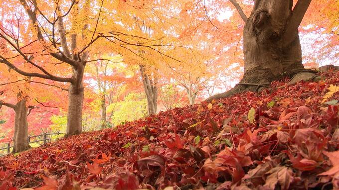 不習岳の「もみじ園」約300本の「ヤマモミジ」と「イロハモミジ」が園内を赤く染め…