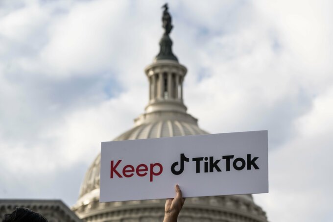 TikTokのクリエーターがTikTok支持のプラカードを掲げる(2023年3月)