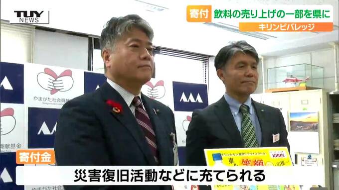 災害復旧の活動に 大手飲料メーカーが飲料の売り上げの一部を県に寄付(山形)