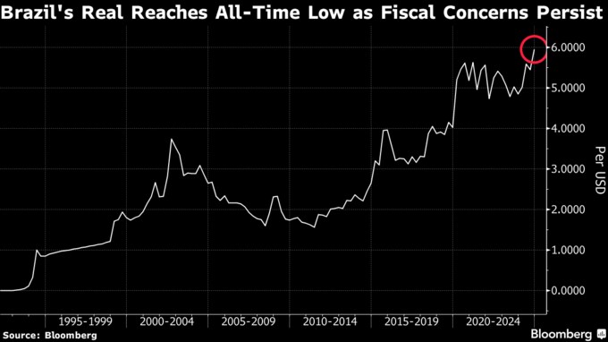 3. ブラジル・レアルが過去最安値、予算案に投資家が失望-株大幅安