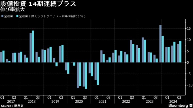 設備投資14期連続増、景気の緩やかな回復示唆-日銀早期利上げ観測続く