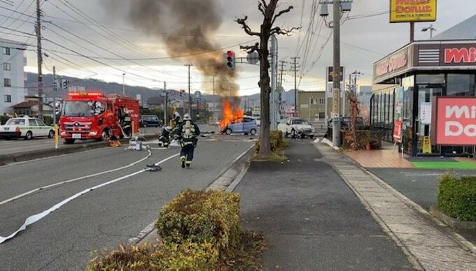 山形市で車が炎上する事故 幼児含む4人が病院に搬送と判明 通勤時間帯に現場は混乱
