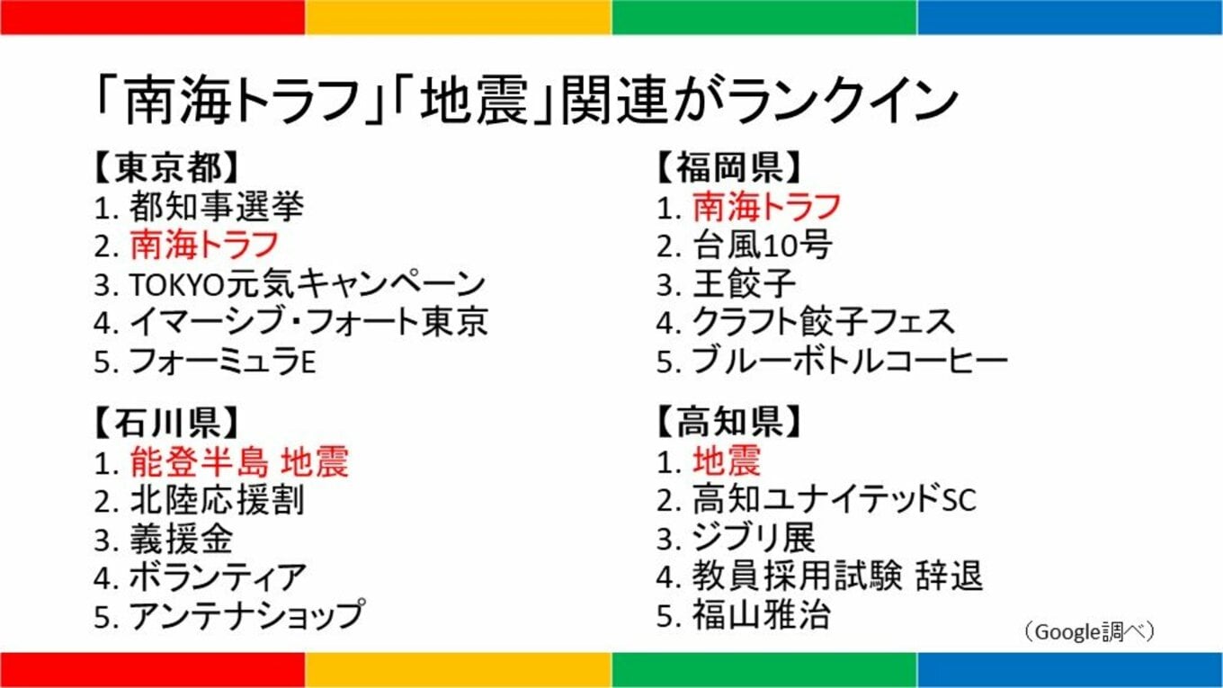 47都道府県別「都道府県名と一緒に検索された急上昇キーワード」を見てみると…「コ…