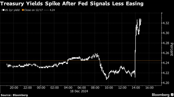 米国債相場、「タカ派的な利下げ」で急落-来年の緩和予想が後退