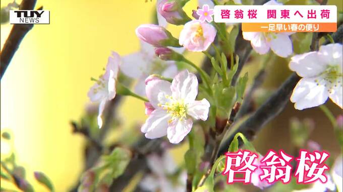 一足早い春の便り! 冬に楽しめる桜『啓翁桜』の出発式 今年は良い質に(山形・西…