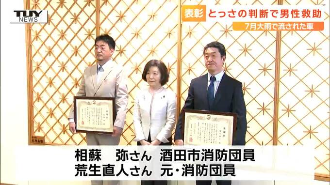 7月の大雨の夜 流れてきた車をつかみ窓を割って救出…消防団のとっさの判断が男性…