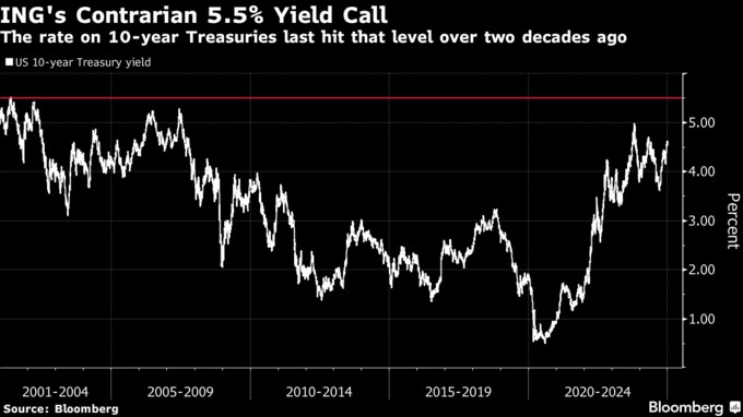 ウォール街で最も弱気、米10年債利回り年内5.5%-蘭INGが予想