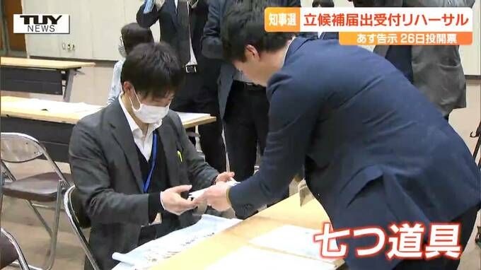 山形県知事選挙があす告示 県庁で立候補者の届け出を受け付けるリハーサル(山形)