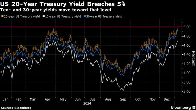 世界的な債券利回り急上昇、22年や23年の株価急落時に酷似-不安募る