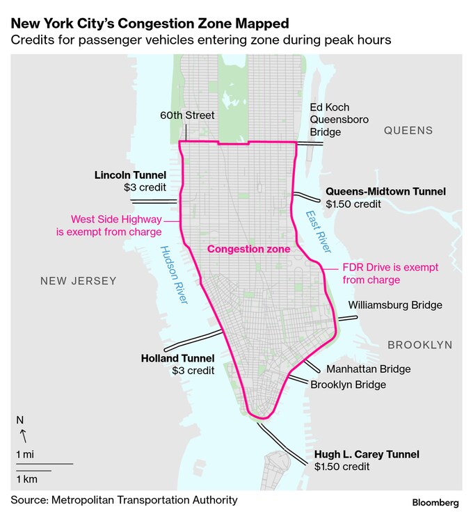 NY市「渋滞税」導入で成果、マンハッタン中心部で交通量減少