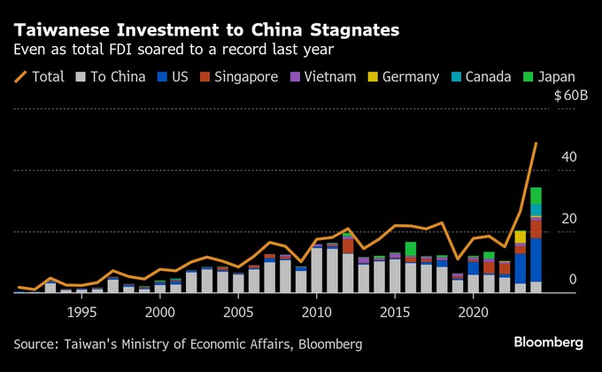 台湾企業の日米向け支出、24年に過去最高更新-対中投資は伸び悩み