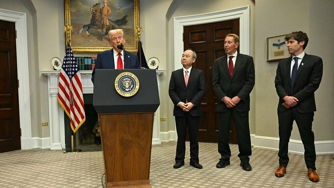 孫正義氏らとAI大型投資案件を発表するトランプ米大統領