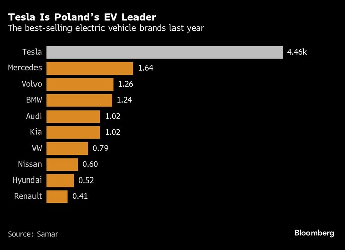 テスラ車の不買運動をポーランド閣僚呼び掛け-マスク氏の発言に反発