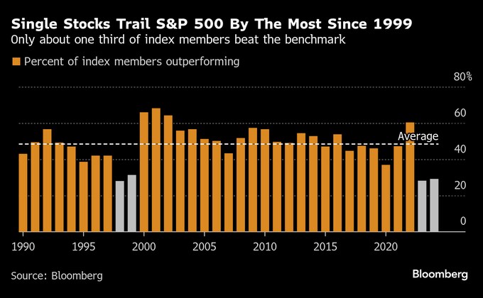 S&P500種指数全体をアウトパフォームした構成銘柄の割合