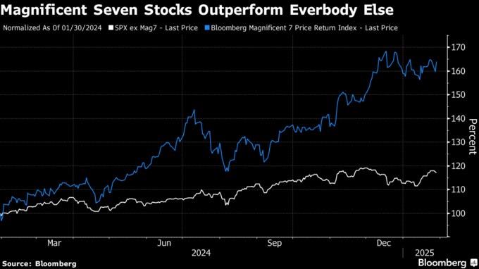 米テク大手への集中、ITバブル以来の水準-DeepSeekショックで露呈