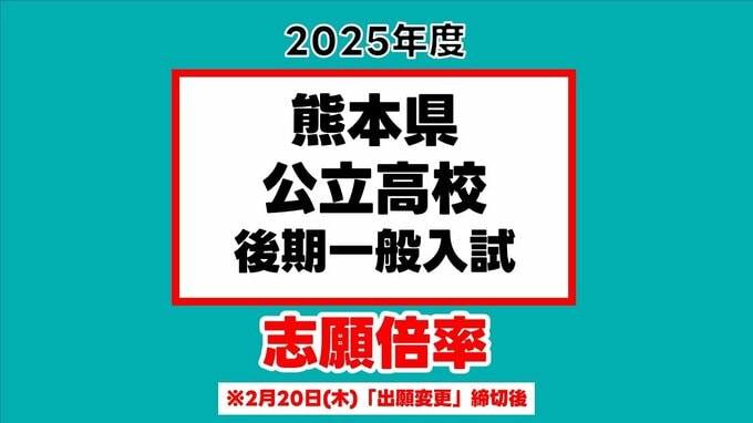 熊本県公立高校入試2025 志願倍率(出願変更後)済々黌、熊本、第一、第二ほか 最…
