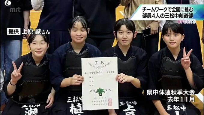 部員1年生女子4人だけで全国大会の切符を手に 三松中学校剣道部(小林市)に注目