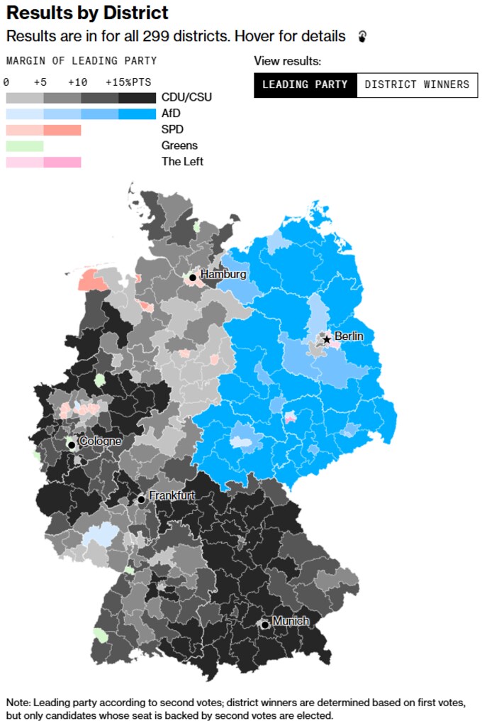 画像 1/3 総選挙の勝利見通しを支持者の前で祝うメルツCDU党首(23日、ベルリン) 写真の記事を読む スクロールで次の画像へ 画像 2/3 写真の記事を読む スクロールで次の画像へ 画像 3/3 写真の記事を読む
