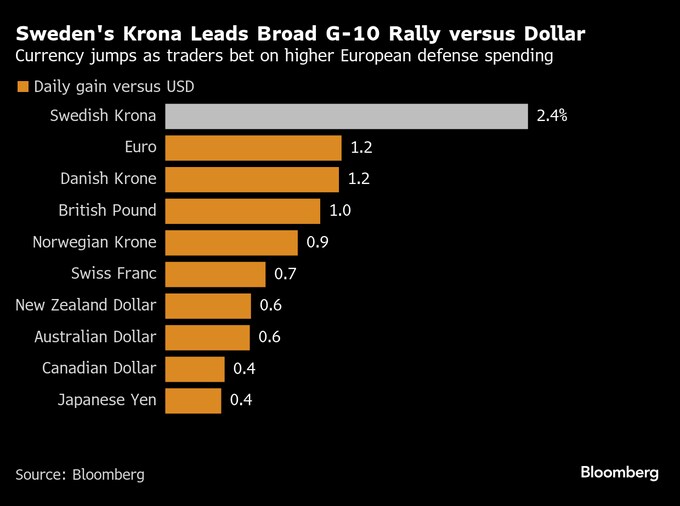3. スウェーデン通貨が人気の投資先に浮上、欧州の防衛力増強方針で