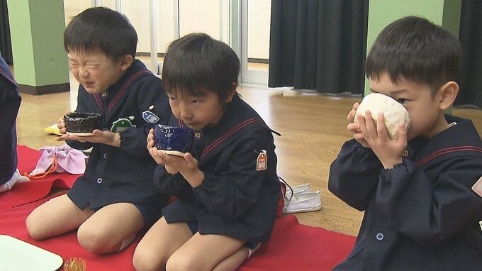 卒園を前に園児が茶道に挑戦 60人が礼儀作法やお茶のたて方を学ぶ 大分