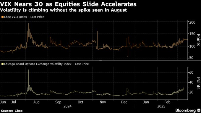 恐怖指数VIX、節目の30に迫る-昨年8月ショック時以来の水準