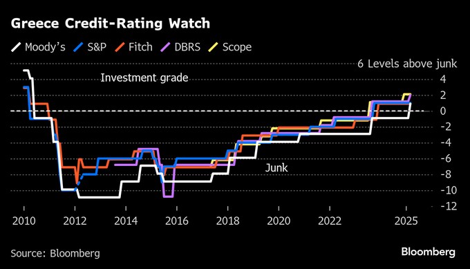 3. ギリシャ格付けを投資適格級に引き上げ、財政改善評価-ムーディーズ