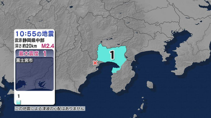 富士宮市で震度1 静岡県中部震源 マグニチュード2.4の地震 津波の心配なし【地震情…
