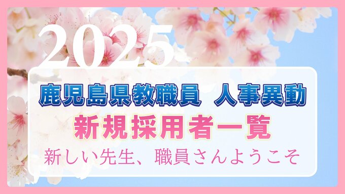 鹿児島県教職員 人事異動2025【新規採用者一覧】「新しい先生、職員さんようこそ」