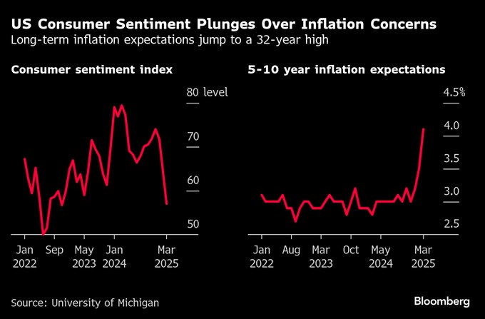 米消費者マインド約2年ぶり低水準、関税懸念でインフレ期待上昇
