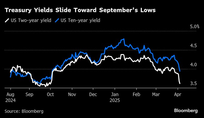 米国債に投資家殺到、トランプ氏貿易戦争で世界的な景気後退警戒