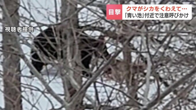 観光地『青い池』近くでクマがシカをくわえて“登ったり下ったり”体長1.5mほど「…