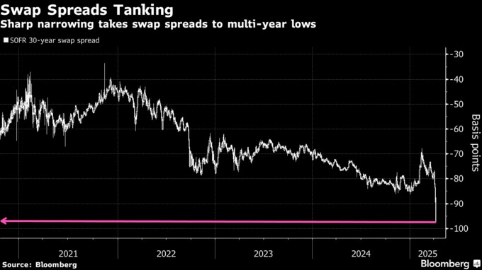 ヘッジファンドの人気取引、崩壊が加速-スワップスプレッド急低下