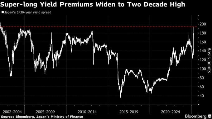5年と30年債の利回り差が02年以来高水準、財政拡張懸念と流動性低下